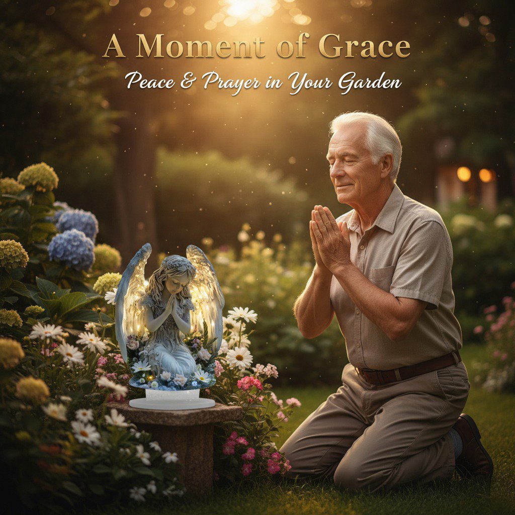 A garden should be a place of tranquility. The angel's serene, praying pose and soft light create a peaceful atmosphere, offering a quiet space for reflection.