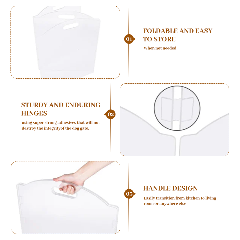 Keep your pets safe and your home stylish with our innovative clear acrylic pet gate! Unlike traditional metal or wooden gates, this 3-panel folding design offers full visibility while creating a secure barrier for doorways, stairs, and hallways. Perfect for pet owners who want functionality without compromising aesthetics!