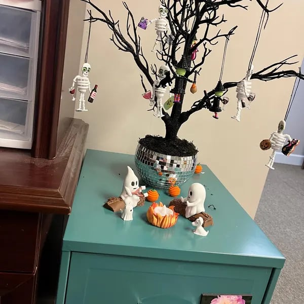 Bring a spooky yet cozy vibe to your space with this Ghost Campfire scene! Perfect for Halloween or year-round fun decor!