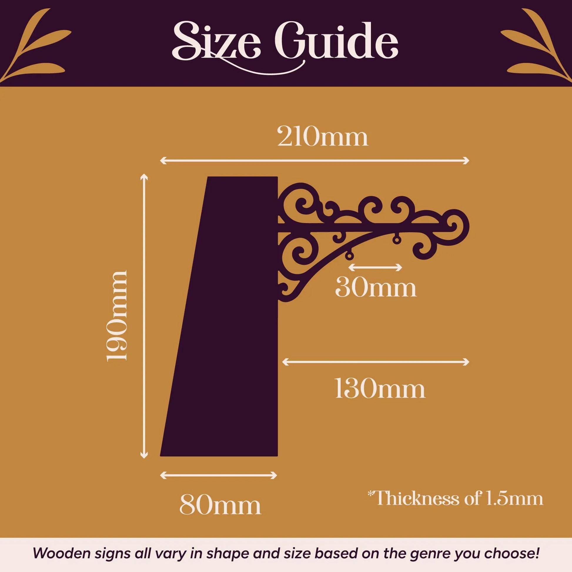 Each wooden sign hangs from a decorative black bracket and comes in popular genres like Fantasy, Romantasy, Young Adult, Dark Romance, and more. Whether you're color-coding or just want that aesthetic library-core vibe, these signs make your shelf look as good as your stories feel.
