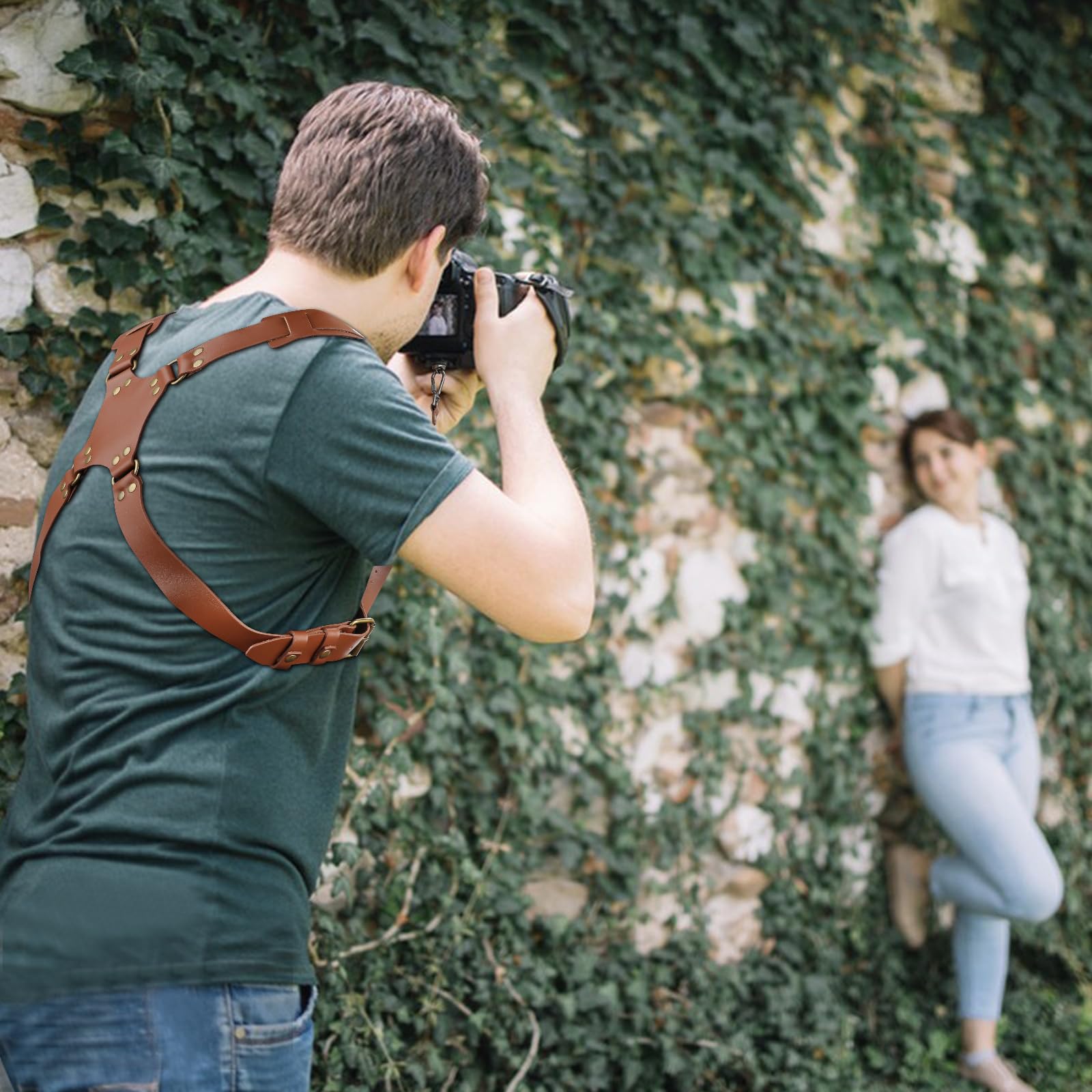 📷UNIQUE DESIGN DOUBLE CAMERA HARNESS— The "X" pattern on the back perfectly distributes the weight on both sides, with strong leather stitching for durability.