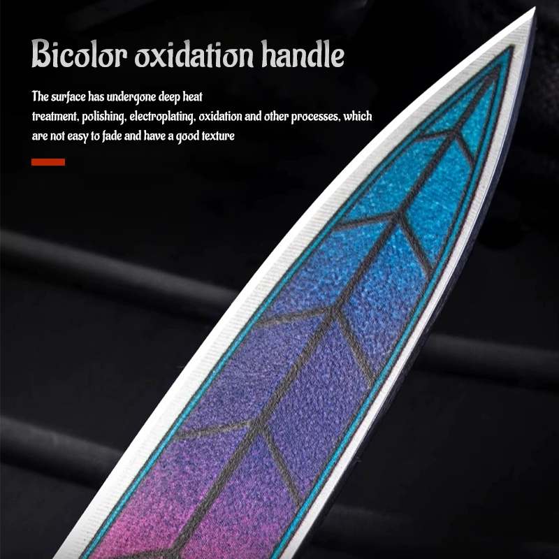 Forged from stainless steel, the blade features a curved design that combines piercing power and cutting efficiency. Its sharpness can easily cut through parachute cords, making it ideal for handling wood and food in the wild. The titanium-coated surface enhances corrosion resistance, ensuring it won't rust even when used by the sea.