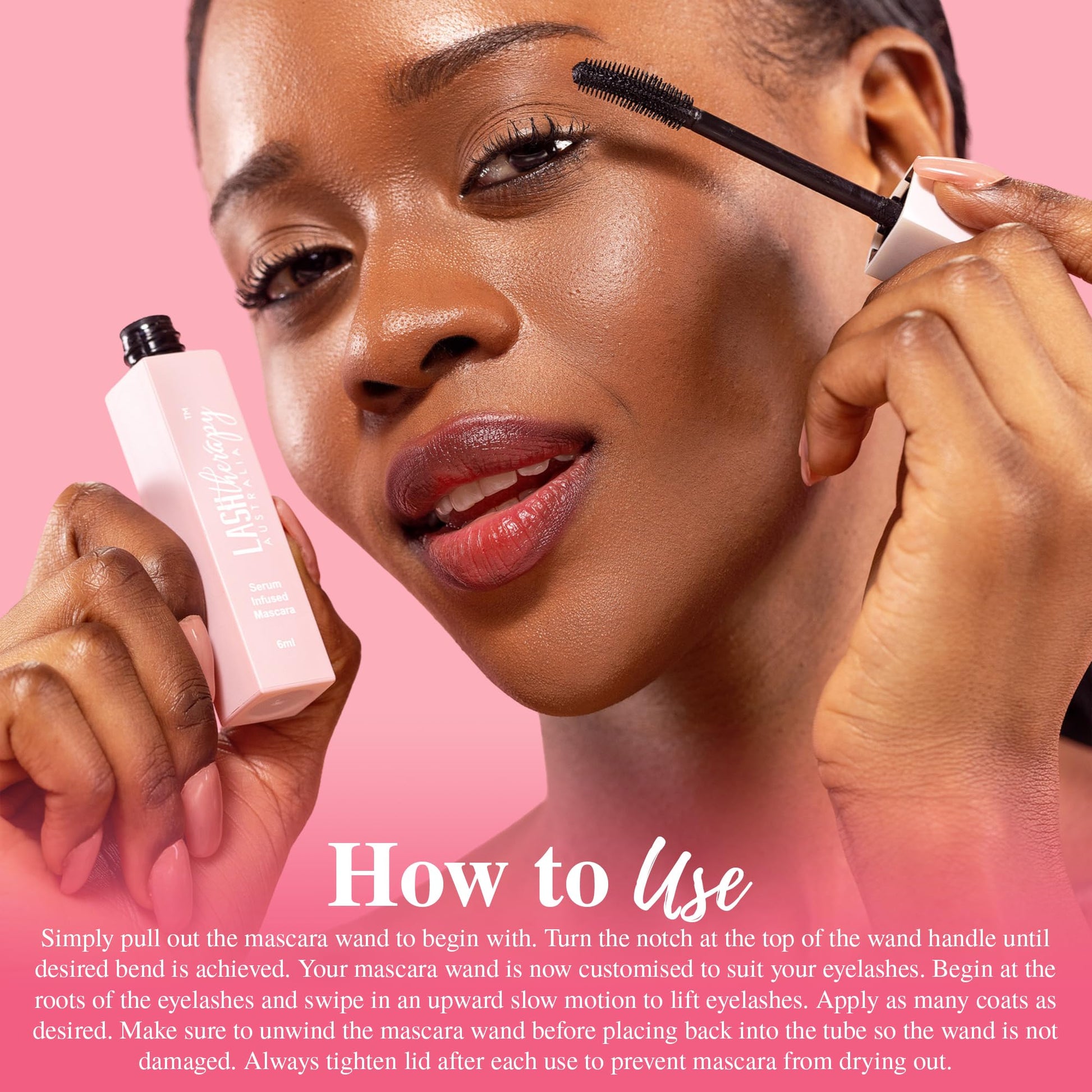 REACHES EVERY LASH – Lash Therapy Australia's growth serum mascara boasts a precision flexible wand designed to capture and thicken each lash evenly and smoothly. This results in soft, smudge proof, non clumping and flake free lashes. Our mascara guarantees a complete and stunning lash transformation, delivering remarkable length and volume.